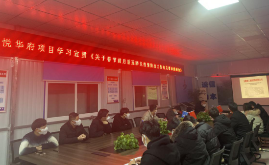 近日,銅陵吾悅?cè)A府項目組織學習【關于切實做好2021年“兩節(jié)”期間新冠肺炎疫情防控工作的通知】和【關于春節(jié)前后新冠肺炎疫情防控工作有關要求的通知】,根據(jù)文件精神安排部署春節(jié)前后新冠肺炎疫情防控工作,做到早安排早準備,確保本項目在春節(jié)前后無疫情發(fā)生。